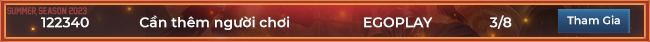 Mùa giải Đấu Trường Danh Vọng - Summer Season 2023 dành riêng cho các Cá Nhân với tổng giá trị giải thưởng lên tới 100.000.000 VND đã sẵn sàng khởi tranh. Được biết, mùa giải sẽ diễn ra với thể thức 2vs2 ghép cặp tự động, đòi hỏi sự phối hợp nhịp nhàng, ăn ý giữa các người chơi thi đấu. Hứa hẹn sẽ đem đến những cuộc chiến khốc liệt, đậm tính chiến thuật giữa các hảo thủ trên nền tảng.
