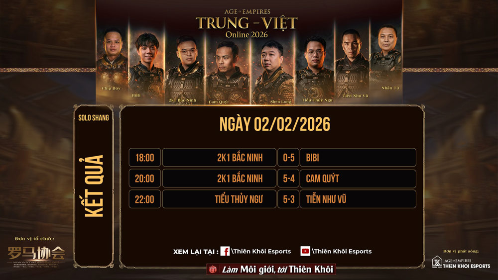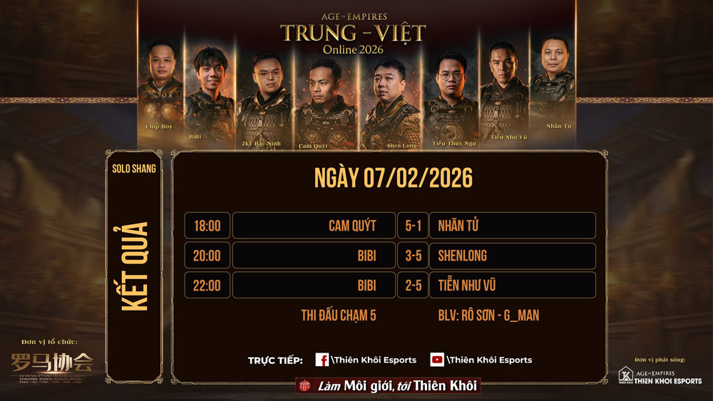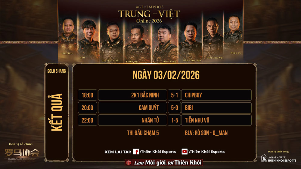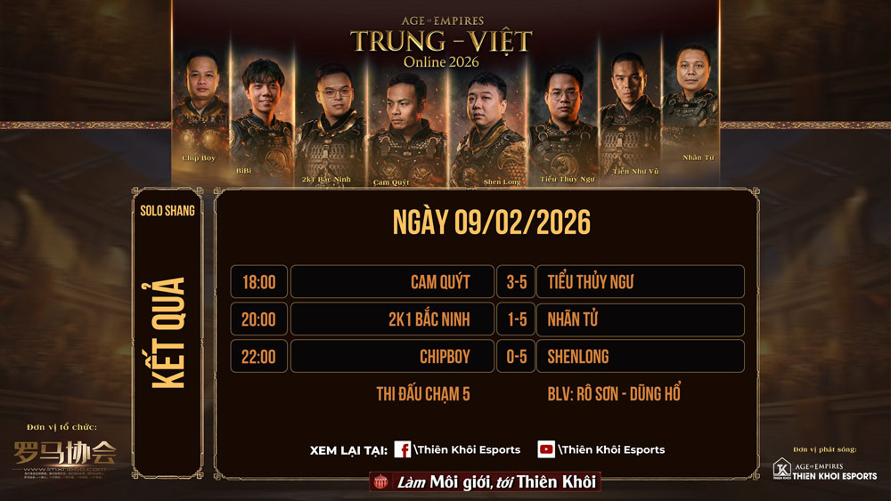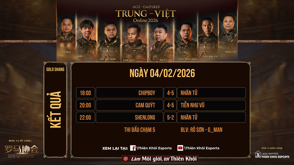 Giải AoE Trung Việt Online 2026 vẫn còn lại một nội dung Solo Assyrian thi đấu theo hình thức nhánh thắng - nhánh thua được diễn ra sau dịp nghỉ Tết Nguyên Đán. Và có lẽ, đó là lúc để người hâm mộ kỳ vọng vào một kết quả tốt đẹp hơn cho AoE Việt Nam.