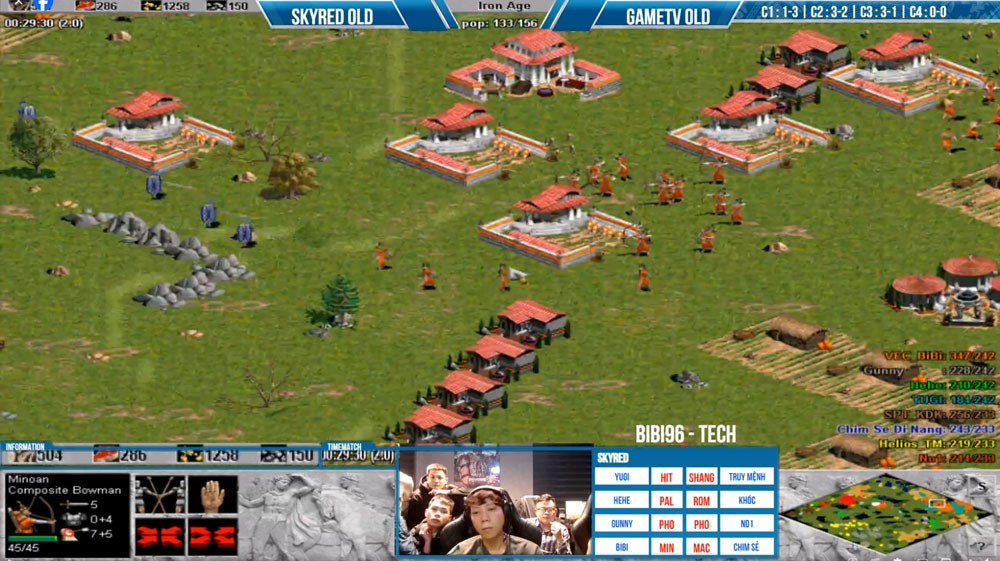 SKYRED (OLD) đã tạo nên một thế trận cực kỳ lợi thế khi BiBi cầm Minoan đánh cung A chủ lực trong góc 3h. Các đồng đội thi đấu tốt khiến anh gần như khỏe nguyên và mặc sức phát triển, xóc quân và bật 4. Ở phía bên kia, No1 - Người cầm chủ lực chỉ có trong tay Phoenician, một loại quân hoàn toàn cửa dưới so với Minoan ở bản đồ này dù đời 3 hay 4. Chính vì thế, hầu hết người xem đều cho rằng bên phía GAMETV sẽ bơm Roman lên 4 trước. Và với việc BiBi lực khỏe hơn, chủ động hơn, anh chỉ cần đẩy quân lên là bên đối thủ không thể đỡ được. Thậm chí nếu không đẩy được, đồng đội Yugi (cầm Hit) cũng đã hồi và sẵn sàng đánh một thế trận đời 4 ưu hơn.